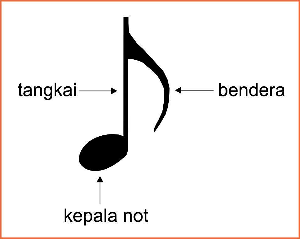 - Not Seperdelapan (𝅘𝅥𝅮) = ½ ketukan